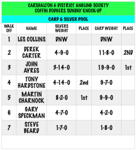 20th January Coffin Dodgers Midweek Silvers Only Match. Five Oaks Fishery