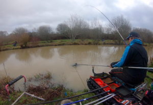 Predictions of a wet and windy day turned out to be just a storm in a tea cup with just the odd downpour that lasted around 5 minutes. With only a few regulars for this Sunday knock-up in a match where there were two cash pools one for Carp and a seperate for Silvers. Those solely fishing for Silvers would have an added bonus of a sneaky practice for the up and coming Surrey & Sussex winter Silvers League. With a walk off draw gave each of the competitors the option of choosing where they would prefer to sit which left plenty of room as we we had the whole complex. The water level was extremely high and chocolate coloured which was expected after the weeks rainfall prior to today’s match.