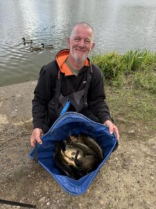 The first midweek match of 2026 saw the Coffin Dodgers crew attend what was to be a difficult day at Five Oaks Fishery. Whilst there were plenty of small fish to accept a bait the quality fish were much harder to tempt with Steve Beard on peg 10 catching a few better stamp skimmers however for the rest of the field it was more of a small fish race. Martin Charnock excels at catching miniature fish at speed taking in excess of 500 blips as he took the spoils with 8-8-0 along with his winning pairs partner Ron Carter on peg 2 who added 4-0-0 to their total for 12-8-0 to win the random pairs pool. Second place from peg 4 was Derek Carter (top Right) with 6-13-0. Dennis Cooper on peg 6 took joint third with Ron with a weight of 4-0-0 from peg 6.