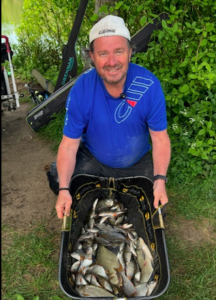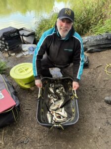 Round 4 turned out to be another tricky day. Feed to much or at the wrong time and the Carp would muscle in to upset what was already a challenge in getting bites from the Silvers. The added influx of water created by this weeks rain didn’t really help matters either. Top bloke was Gary Spackman on end peg 1 with 9-0-0 of quality skimmers in second place was Tony Hardstone with 5-10-0 just piping Richie Hemmings by one ounce to place him in third place, with John Ayres taking fourth place with 5-4-0. Two more individuals were knocked out today those being Trevor Pavitt & Max Calverley. The remaining five anglers going into the next round at Sumners are Richie Hemmings, Gary Spackman, Derek Carter, Martin Charnock & Robbie Gaiger where by only three of the five will go through to the final round held on Harris Lake at Marsh Farm Fishery.