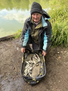 Predictions of a wet and windy day turned out to be just a storm in a tea cup with just the odd downpour that lasted around 5 minutes. With only a few regulars for this Sunday knock-up in a match where there were two cash pools one for Carp and a seperate for Silvers. Those solely fishing for Silvers would have an added bonus of a sneaky practice for the up and coming Surrey & Sussex winter Silvers League. With a walk off draw gave each of the competitors the option of choosing where they would prefer to sit which left plenty of room as we we had the whole complex. The water level was extremely high and chocolate coloured which was expected after the weeks rainfall prior to today’s match.