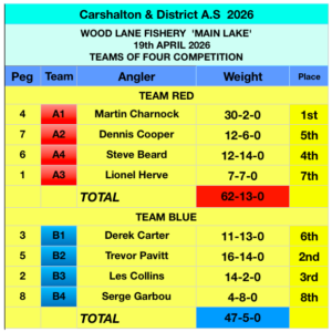 19th April. Teams of Four. Wood Lane Fishery. Silvers Only
